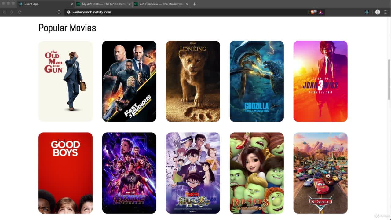 The movie website you can see popular movies,search movies and check casted actors/actresses biograpghy. I used Rreact.js, Styled Components and The Movie Database API for making it.